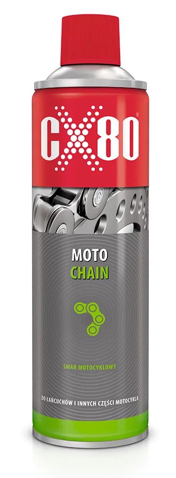 Pre reťaze a ostatné diely motocyklov. Prípravok navrhnutý špeciálne pre motocykle. Zohľadňuje špecifické požiadavky na mazanie reťazí a ostatných pohyblivých dielov motocykla, napr. vysoké otáčky a vysokú rýchlosť.
